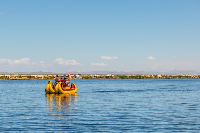 Traslado del hotel desde las 7:00 a.m. al puerto lacustre de puno, para abordar una embarcación a motor donde viajaremos con destino a la isla flotante de los Uros en donde visitan por un tiempo de 45 minutos.